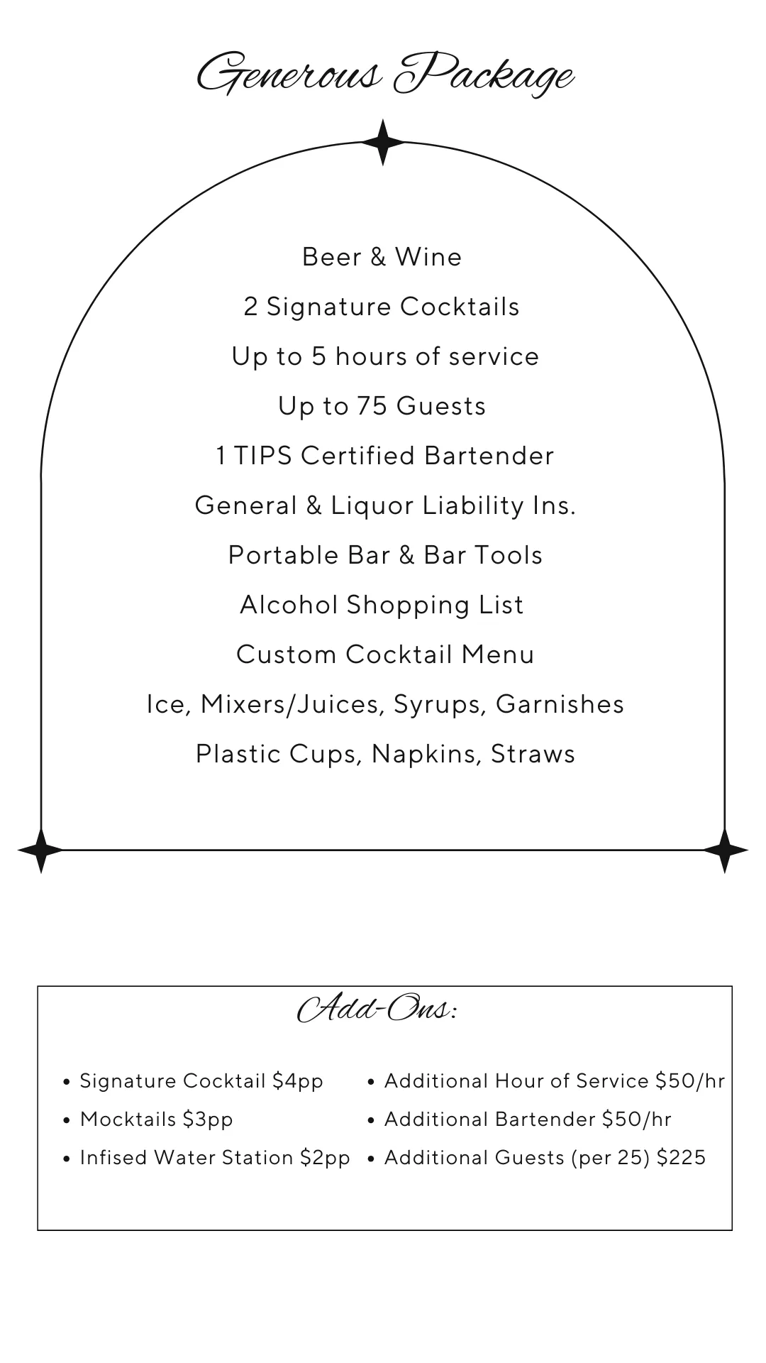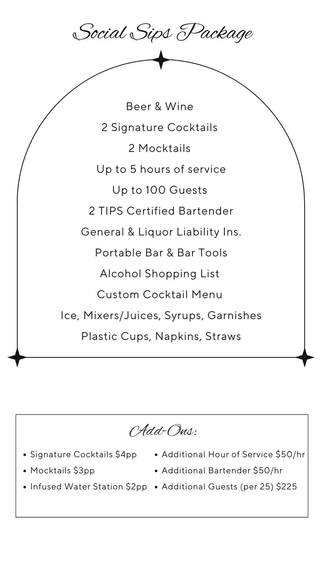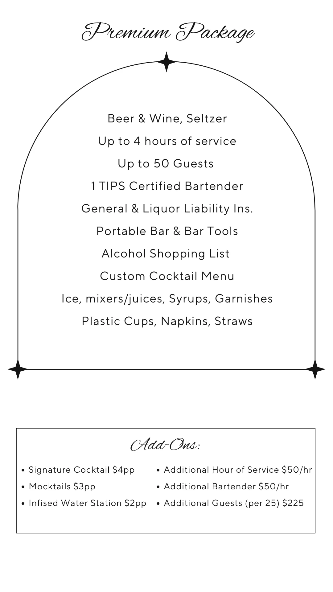 Clients are required to provide the alcohol due to legal restrictions